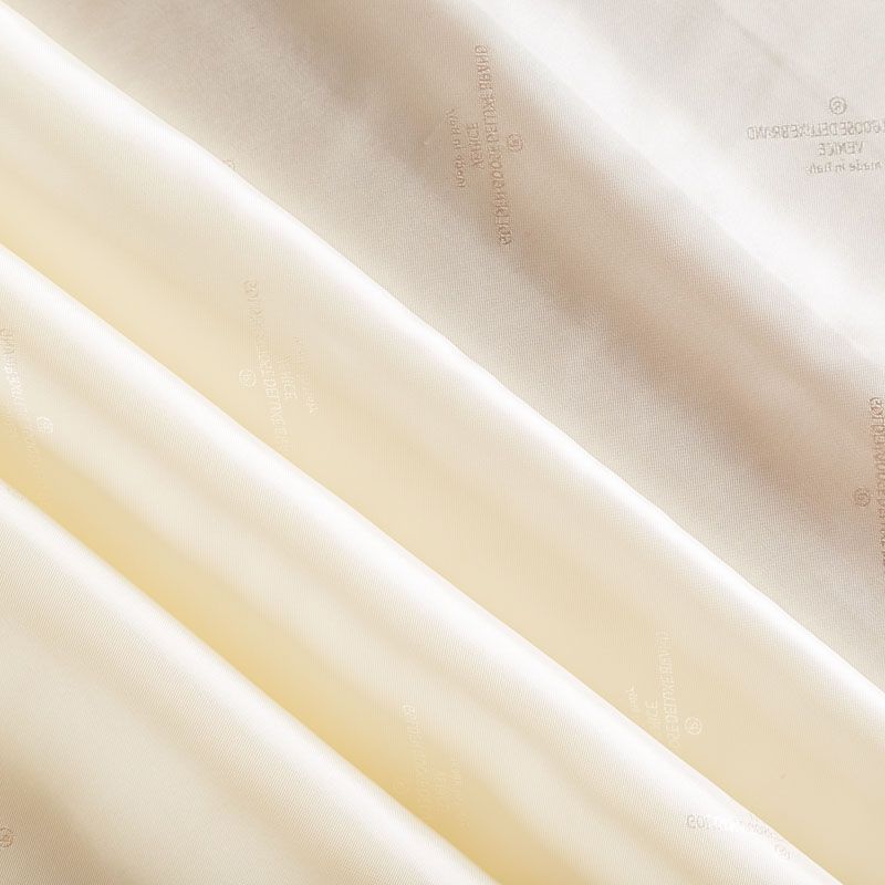 Итальянская подкладочная ткань из вискозы сливочного оттенка с редким жаккардовым узором и красивым лоском. Полотно средней плотности, легкое, не просвечивает, хорошо скользит, не тянется. Подойдет для изготовления таких изделий, как пальто, костюмы, куртка, шуба, платье, жакет.