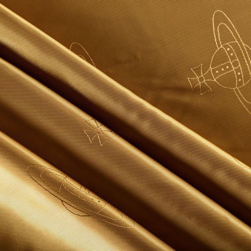 Итальянская подкладочная ткань из вискозы горчичного оттенка с редким жаккардовым узором и красивым блеском. Полотно средней плотности, легкое, не просвечивает, хорошо скользит, не тянется. Подойдет для изготовления таких изделий, как пальто, костюмы, куртка, шуба, платье, жакет.