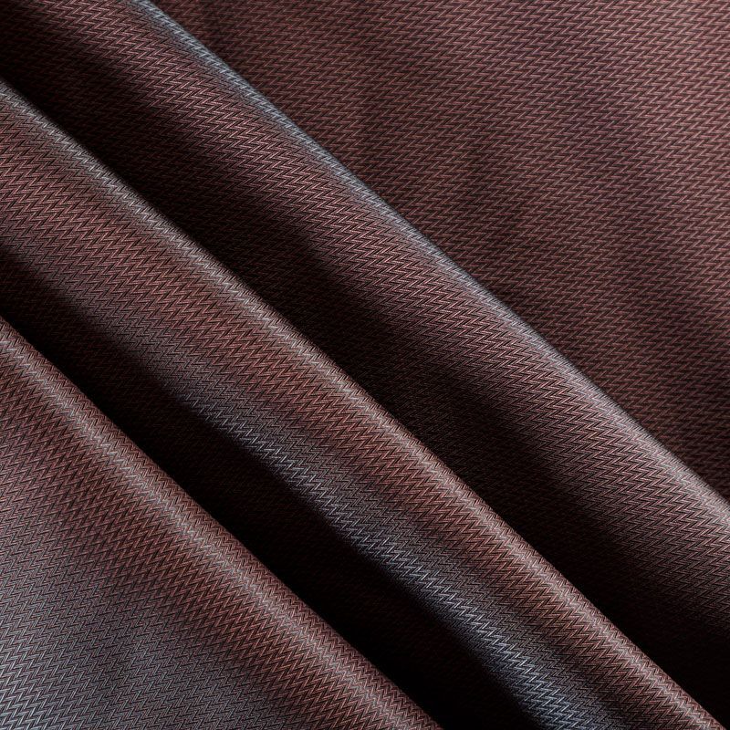 Смесовая подкладочная ткань коричневого оттенка с жаккардовым геометрическим узором и красивым лоском. Полотно средней плотности, легкое, не просвечивает, хорошо скользит, не тянется. Подойдет для изготовления таких изделий, как пальто, костюмы, куртка, шуба, платье, жакет.