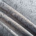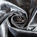 Смесовая подкладочная ткань серого оттенка с жаккардовым узором и красивым лоском. Полотно средней плотности, легкое, не просвечивает, хорошо скользит, не тянется. Подойдет для изготовления таких изделий, как пальто, костюмы, куртка, шуба, платье, жакет.
