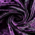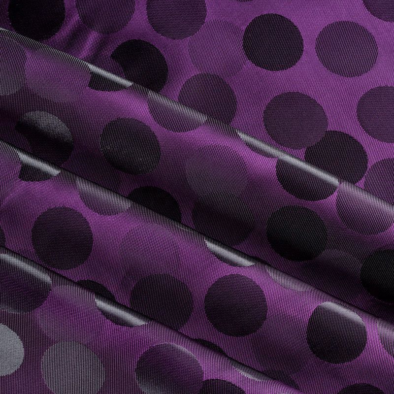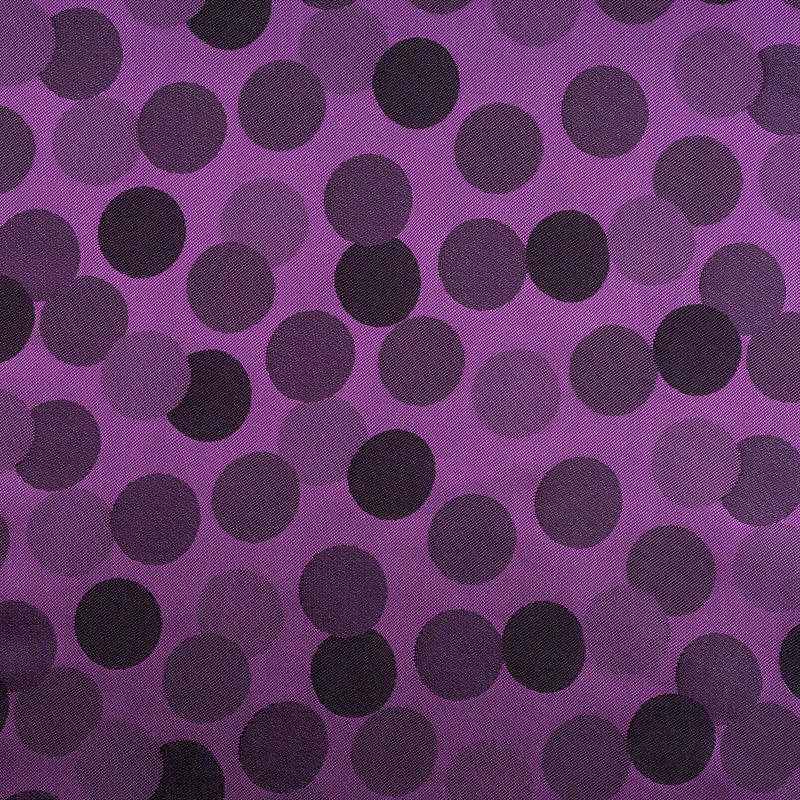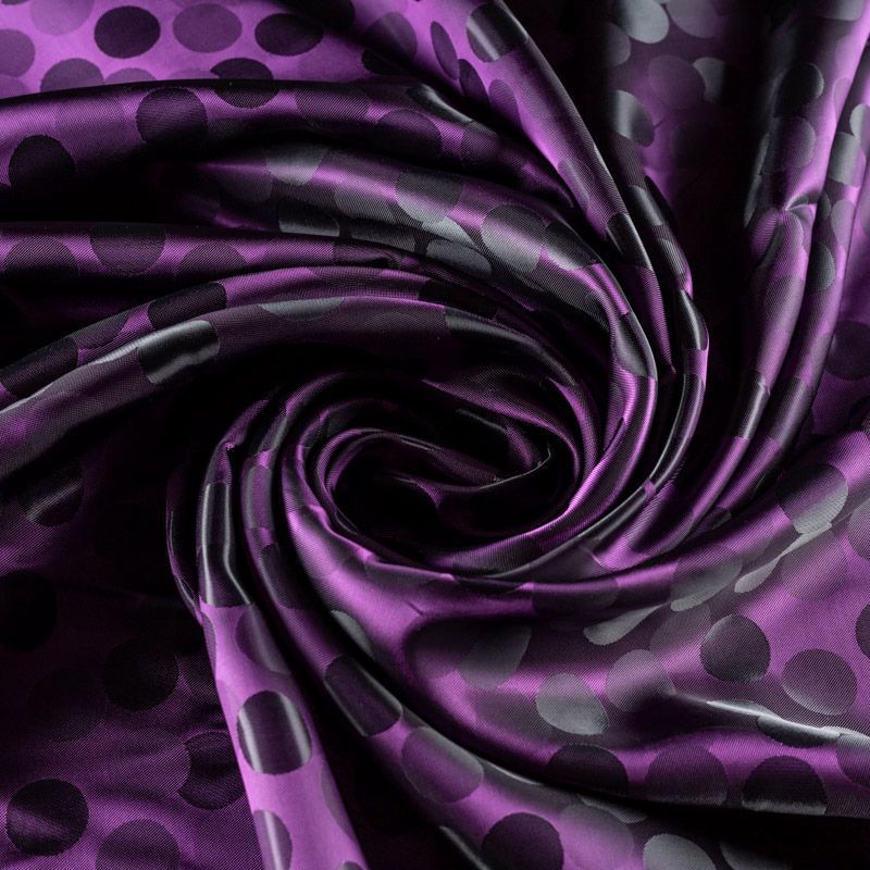 Подкладочная ткань легкая, с жаккардовым крупным "горохом",  лилового оттенка, с красивым блеском. Не  просвечивает, хорошо скользит. Подойдет для изготовления таких изделий, как пальто, костюмы, куртка, шуба, платье, жакет.
