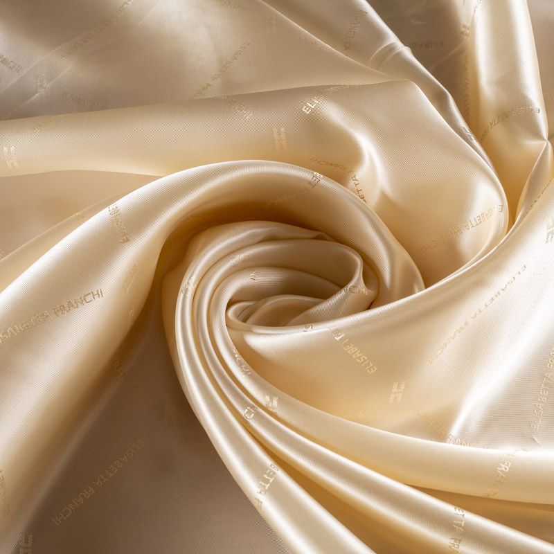 Подкладочная ткань легкая, с твиловой поверхностью и редкими жаккардовым надписями, с красивым блеском. Не просвечивает, хорошо скользит. Подойдет для изготовления таких изделий, как пальто, костюмы, куртка, шуба, платье, жакет.