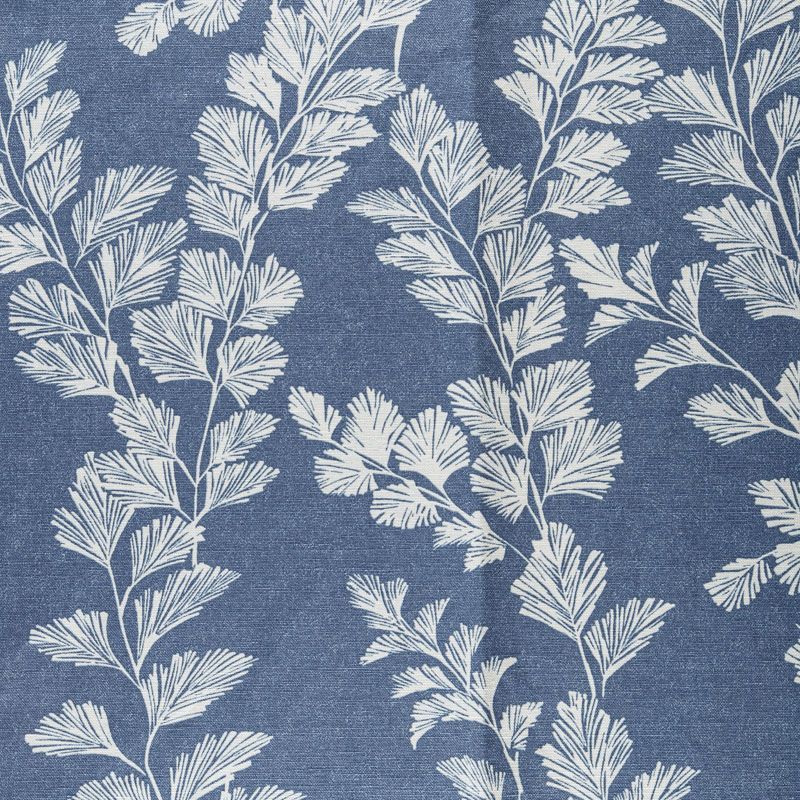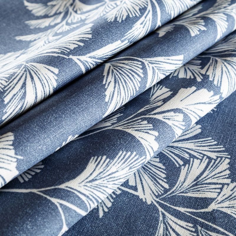 Хлопковая портьерная ткань английского производителя. На синей текстурированной основе наснесен принт в виде изящных веточек в монохромной гамме. Ткань средней плотности, прекрасно держит форму, драпируется в устойчивые складки. Подойдет для классических портьер, римских штор, покрывал, подушек, скатертей, салфеток и других элементов текстильного интерьера как в самостоятельном исполнении, так и качестве компаньона к однотонным варинтам.