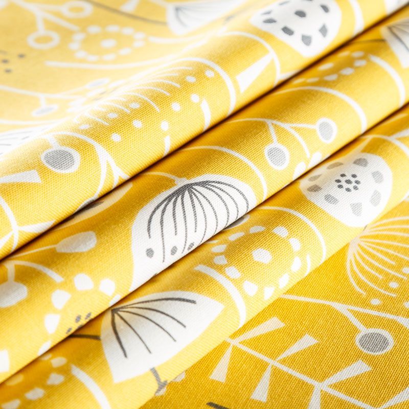 Хлопковая портьерная ткань Берген из коллекции Сканди английского производителя Fryett's Fabric. На желтой текстурированной основе наснесен принт в виде стилизованных растений и цветов в монохромной гамме. Ткань средней плотности, прекрасно держит форму, драпируется в устойчивые складки. Подойдет для классических портьер, римских штор, покрывал, подушек, скатертей, салфеток и других элементов текстильного интерьера как в самостоятельном исполнении, так и качестве компаньона к однотонным варинтам.