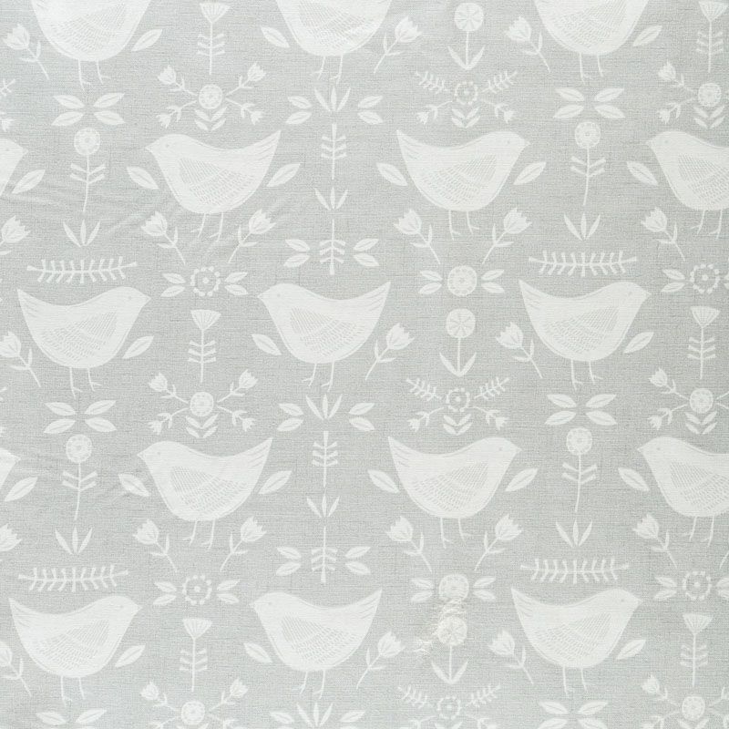 Хлопковая портьерная ткань Нарвик из коллекции Сканди английского производителя Fryett's Fabric. На светло-серой текстурированной основе наснесен принт в виде белых стилизованных птиц и цветов. Ткань средней плотности, прекрасно держит форму, драпируется в устойчивые складки. Подойдет для классических портьер, римских штор, покрывал, подушек, скатертей, салфеток и других элементов текстильного интерьера как в самостоятельном исполнении, так и качестве компаньона к однотонным варинтам.