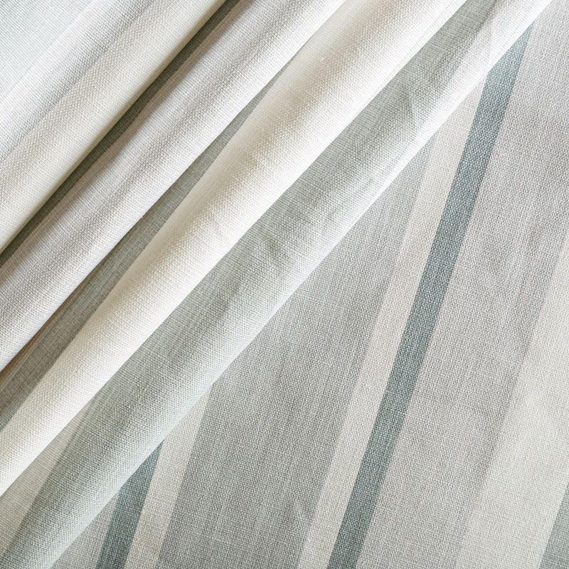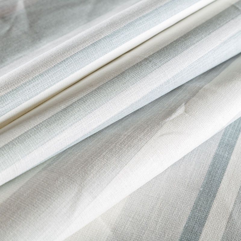 Матовая фактурная портьерная ткань в полоску, которая расположена вдоль кромки. Представлена в бело-серой палитре. Ткань средней плотности, без блеска, хорошо драпируется, имеет полонтяное переплетение. Прекрасно впишется в самые разные стилевые направления (прованс, кантри). Можно использовать для пошива портьер, римской шторы, салфеток, столового белья, подушек, покрывал и других предметов текстильного интерьера.
