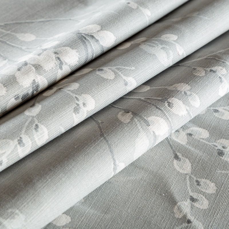 Хлопковая портьерная ткань с изящным весенним принтом в сдержанных серых оттенках. Ткань средней плотности, без блеска, хорошо драпируется, имеет полонтяное переплетение. Можно использовать для пошива портьер, римской шторы, салфеток, столового белья, подушек, покрывал и других предметов текстильного интерьера.