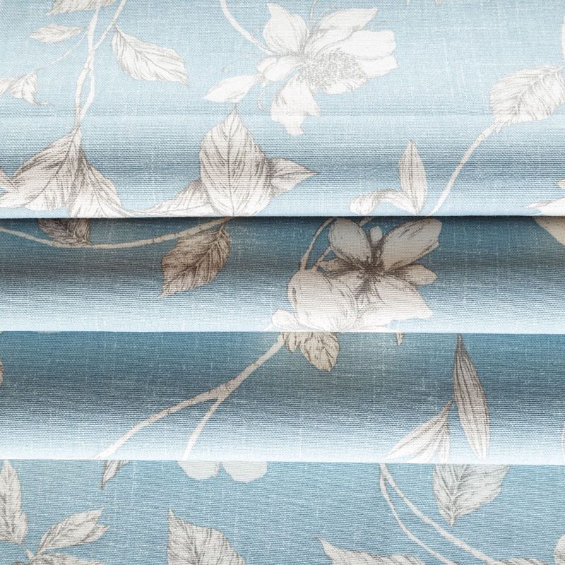 Хлопковая портьерная ткань английского производителя. На голубой текстурированной основе нанесен изящный растительный принт в черно-белой гамме. Ткань средней плотности, прекрасно держит форму, драпируется в устойчивые складки. Подойдет для классических портьер, римских штор, покрывал, подушек, скатертей, салфеток и других элементов текстильного интерьера как в самостоятельном исполнении, так и качестве компаньона к однотонным варинтам.