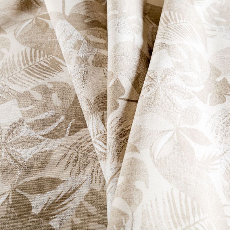 Декоративный смесовый хлопок с монохромным тропическим принтом от испанского производителя Visatex. Ткань средней плотности, приятная и гладкая на ощупь. Интересный вариант для пошива штор, декоративных подушек и покрывал, изготовления текстильных элементов в кухнях-столовых, гостинных, спальнях и даже детских.