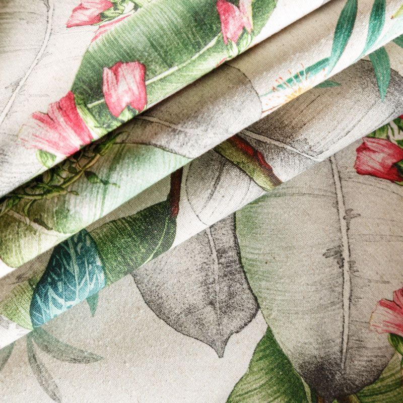 Декоративный смесовый хлопок с тропическим растительным принтом от испанского производителя Visatex. Ткань средней плотности, приятная и гладкая на ощупь. Интересный вариант для пошива штор, декоративных подушек и покрывал, изготовления текстильных элементов в кухнях-столовых, гостинных, спальнях и даже детских.