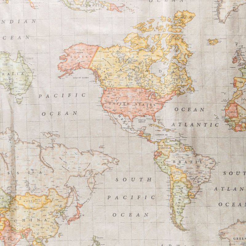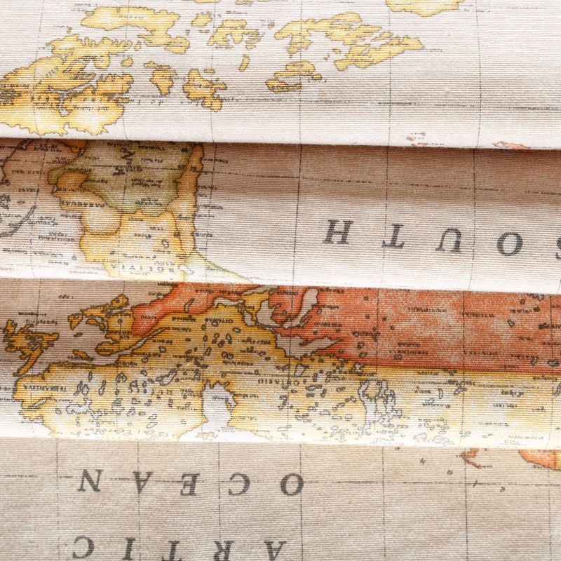 Принтованная ткань с ярким реалистичным рисунком для юных искателей приключений и любителей путешествовать, выполненным на смесовой основе.Ткань средней плотности, без блеска, хорошо драпируется, имеет полонтяное переплетение. Прекрасно подойдет для оформления детской или дачного интерьера. Можно использовать для пошива портьер, римской шторы, салфеток, столового белья, подушек, покрывал, обивки мебели.