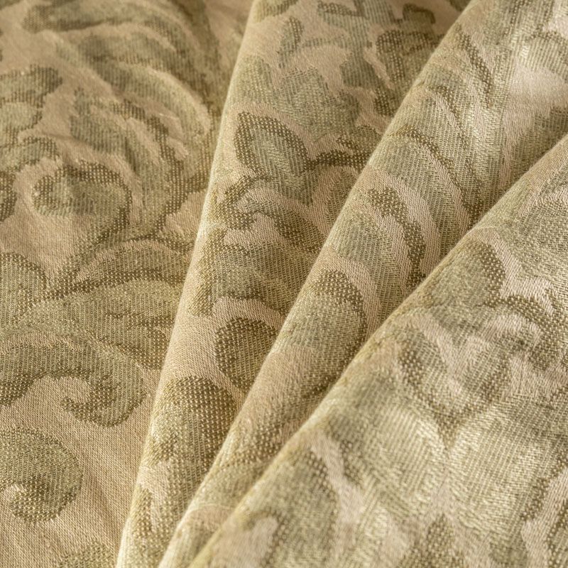 Натуральная льняная жаккардовая портьера с классическим вензелем в зеленой цветовой гамме. Ткань плотная, тяжелая, может драпироваться в большие складки. Лен подойдет для плотных штор, покрывал, подушек, скатертей и салфеток, обивки мебели, Прекрасно впишется в интерьер как в совеременном стиле, так и в стиле прованс.