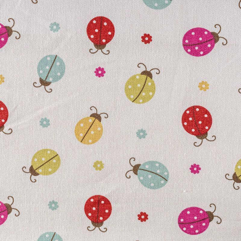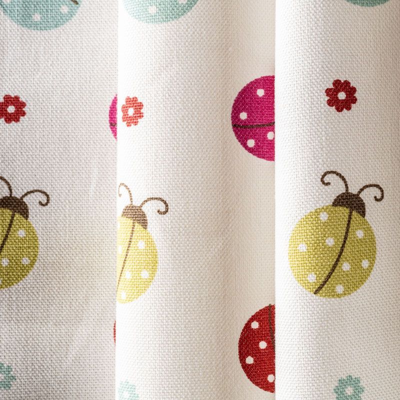 Натуральная хлопковая портьерная ткань из коллекции Счастливые дни известного бренда Fryett's с милым ярким принтом в виде божьих коровок. Ткань средней плотности, без блеска, хорошо драпируется, имеет полонтяное переплетение. Прекрасно подойдет для оформления детской или дачного интерьера. Можно использовать для пошива портьер, римской шторы, салфеток, столового белья, подушек, покрывал, обивки мебели.