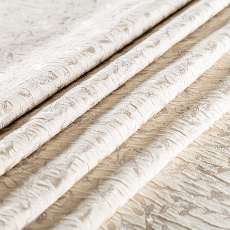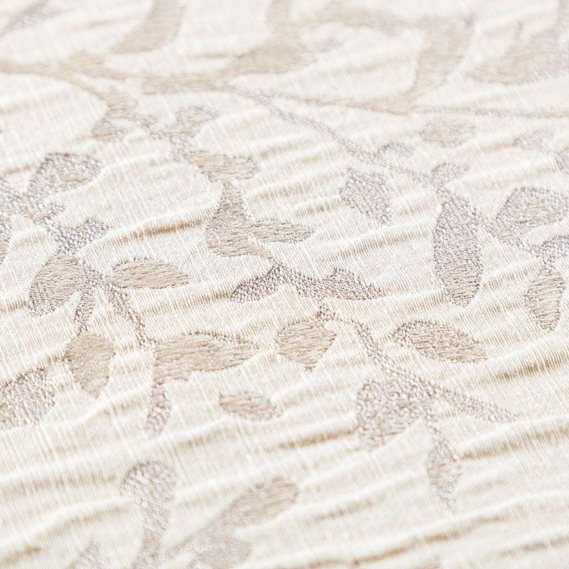 Стильная жаккардовая ткань бежевого натурального оттенка с великолепным растительным дизайном из коллекции Фабио известного бренда Fryett's. Ткань высокой плотности, имеет фактурную поверхность и сдержанный сатиновый блеск, прекрасно держит форму. Ткани этой коллекции прекрасно впишутся в традиционный и современный интерьер в качестве римской или классической шторы, подушек, обивки мебели.