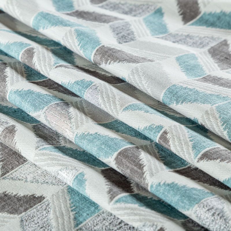 Стильная жаккардовая ткань серо-голубого оттенка с геометрическим узором "зиг-заг" из коллекции Зена известного бренда Fryett's. Ткань высокой плотности, имеет матовую фактурную поверхность, прекрасно держит форму. Ткани этой коллекции прекрасно впишутся в традиционный и современный интерьер в качестве римской или классической шторы, подушек, обивки мебели.