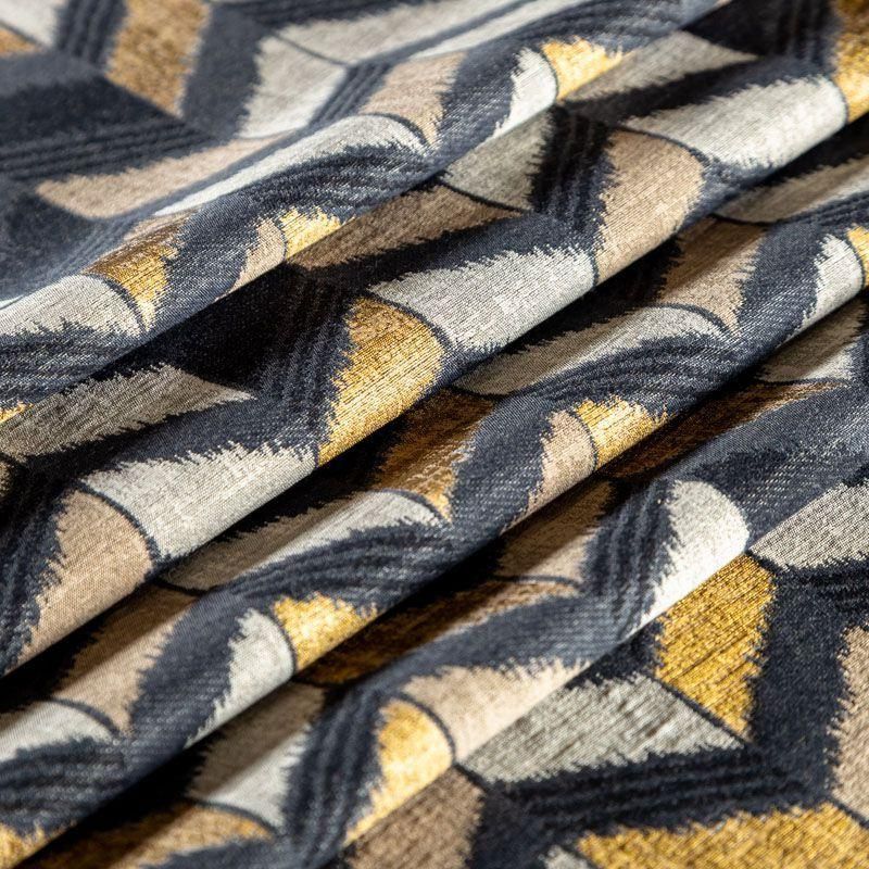 Стильная жаккардовая ткань темно-серого цвета с геометрическим узором "зиг-заг" из коллекции Зена известного бренда Fryett's. Ткань высокой плотности, имеет матовую фактурную поверхность, прекрасно держит форму. Ткани этой коллекции прекрасно впишутся в традиционный и современный интерьер в качестве римской или классической шторы, подушек, обивки мебели.