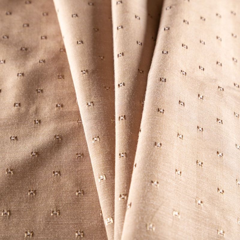 Изысканная портьерная ткань на хлопковой основе от известного бренда Fryett's с фактурной поверхностью, которая имитирует дикий шелк. Ткань средней плотности имеет сдержанный благородный блеск, хорошо держит форму и драпируется. Подойдет для портьер, римсой шторы, покрывал, подушек, скатертей, салфеток  и других элементов текстильного интерьера как в самостоятельном исполнении, так и качестве компаньона к цветным варинтам.