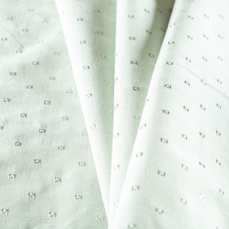 Изысканная портьерная ткань на хлопковой основе от известного бренда Fryett's с фактурной поверхностью, которая имитирует дикий шелк. Ткань средней плотности имеет сдержанный благородный блеск, хорошо держит форму и драпируется. Подойдет для портьер, римсой шторы, покрывал, подушек, скатертей, салфеток  и других элементов текстильного интерьера как в самостоятельном исполнении, так и качестве компаньона к цветным варинтам.