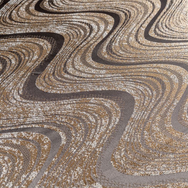 Интересная жаккардовая ткань с абстрактным рисунком в виде горизонтальных "волн" прекрасно подойдет для стильного современного интерьера. Ткань средней плотности, мягкая, хорошо драпируетсяи держит форму. Подойдет в качестве штор для гостиной, спальни, также можно использовать для пошива покрывала, декоративных чехлов, подушек, римской шторы.