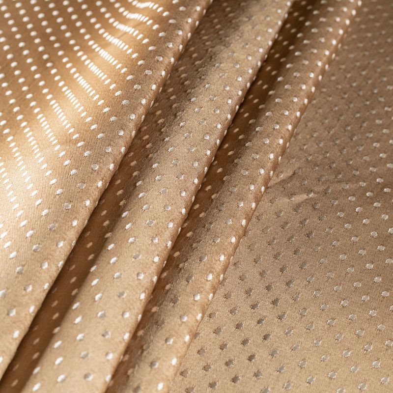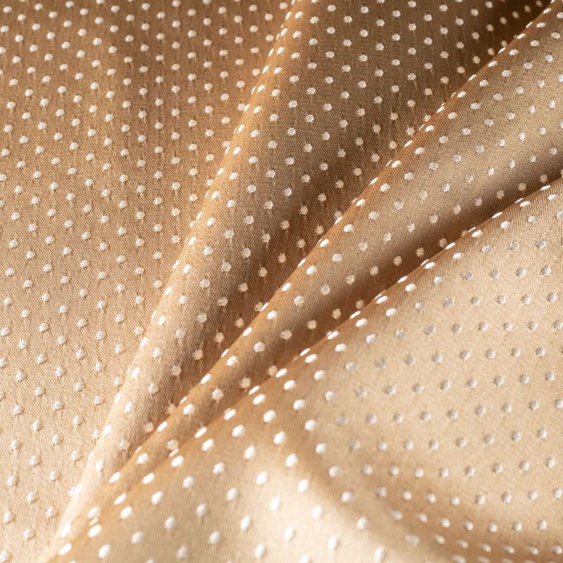 Универсальный жаккардовый рисунок в виде мелкого горошка молочного цвета идеален для оформления интерьера в большинстве стилей. Ткань средней плотности, хорошо держит форму и драпируется. Рекомендуется для пошива штор, декоративных чехлов, покрывал, изготовления столового белья, подушек, скатертей и салфеток.