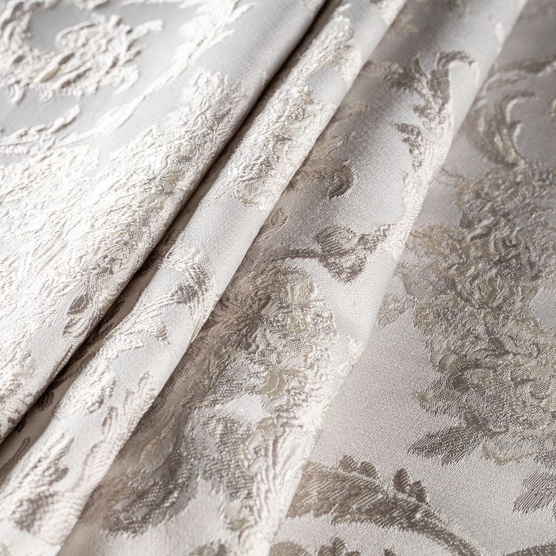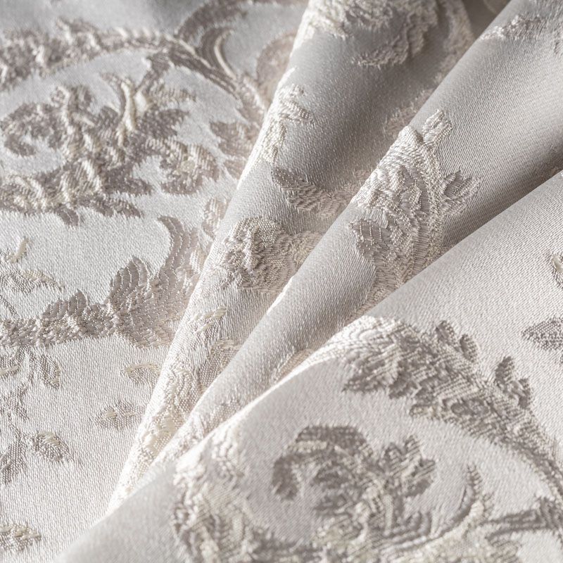 Портьерная ткань с нежными жаккардовыми вензелями-веточками и цветами на сатиновой основе. Шторы с таким узором создают нарядный, изысканный и яркий интерьер. Они органично впишутся в классический и в современный стиль и придадут особый шарм и настроение помещению. Прекрасно подойдут для оформления гостиной, спальни, кабинета и загородного дома.