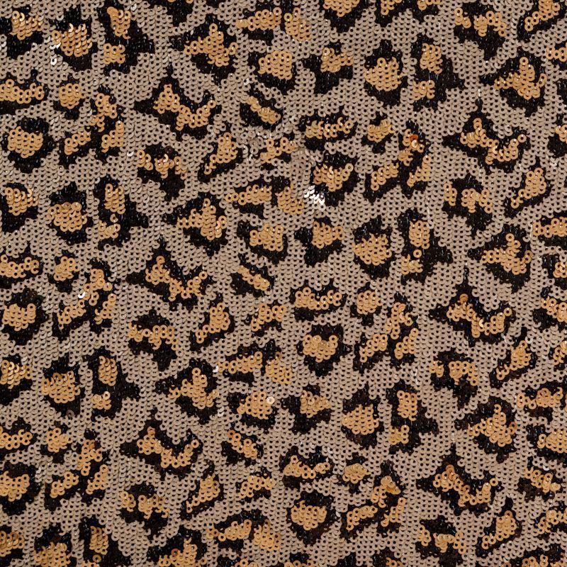 Пайетки с анималистическим узором в золотисто-черной гамме. Вышиты на черной эластичной сетке. Роскошно смотрится в блестящих нарядных комбинезонах, сверкающих платьях и искрящихся блузках, юбках, туниках, концертных костюмах, нарядах для танцев.  На ощупь полотно не тяжелое, достаточно пластичное и удобное в носке.