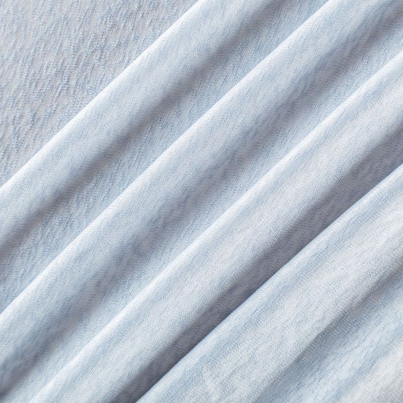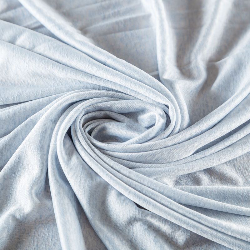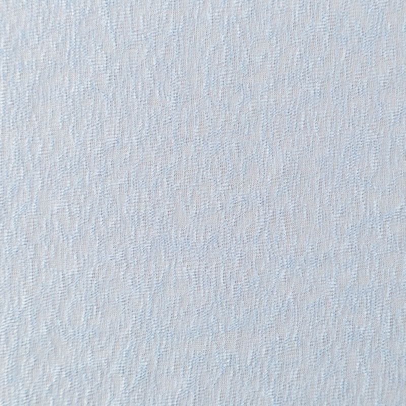Тонкий трикотаж выбеленного голубого оттенка с фактурной поверхностью, который особенно эффектно смотрится в драпировке. Материал слегка просвечивает, приятный к телу и комфортный в носке. Подойдет для пошива топов, футболки, бадлонов, лонгслива, кардигана, спортивного платья.