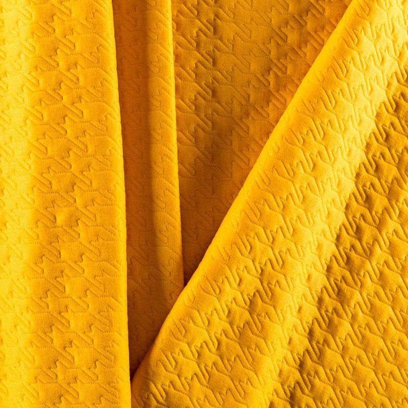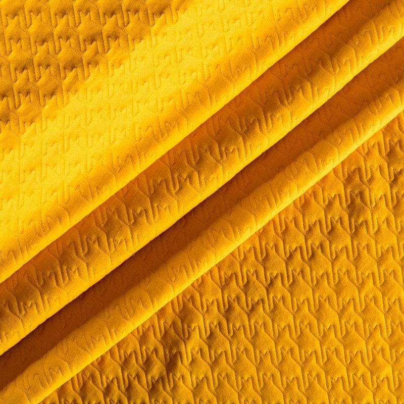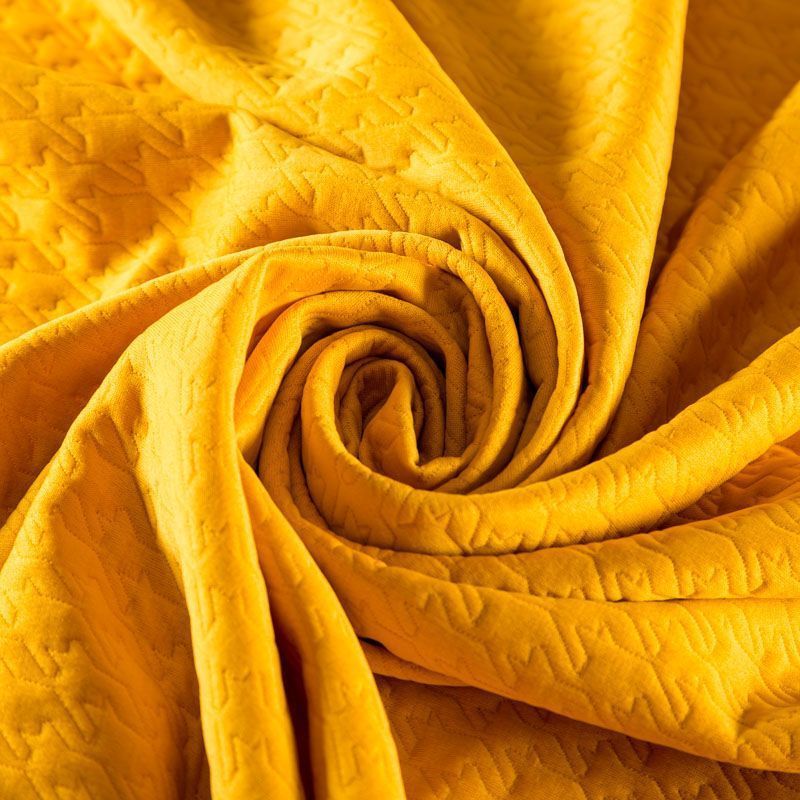 Плотное трикотажное полотно с имитацией стежки. Поверхность ткани объемная, мягкая, приятная на ощупь. Трикотаж не просвечивается, хорошо тянется за счет эластана в составе, держит форму. Прекрасно подойдет для пошива легких пальто, курток, бомберов, кардиганов, платьев, юбок, шорт.