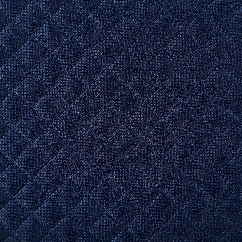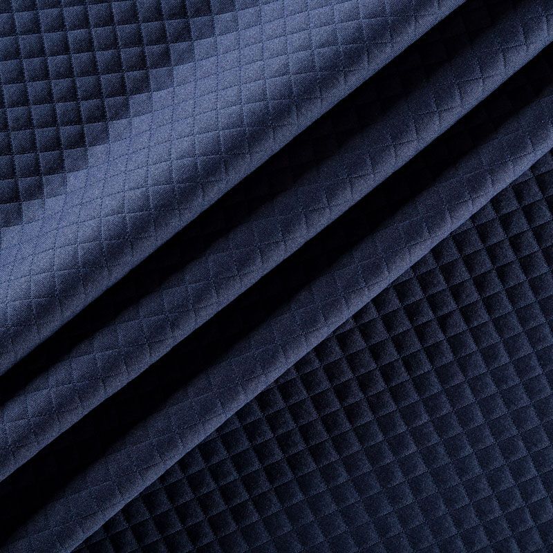 Плотное трикотажное полотно с имитацией стежки. Поверхность ткани объемная, мягкая, приятная на ощупь. Трикотаж не просвечивается, хорошо тянется за счет эластана в составе, держит форму. Прекрасно подойдет для пошива легких пальто, курток, бомберов, кардиганов, платьев, юбок, шорт.