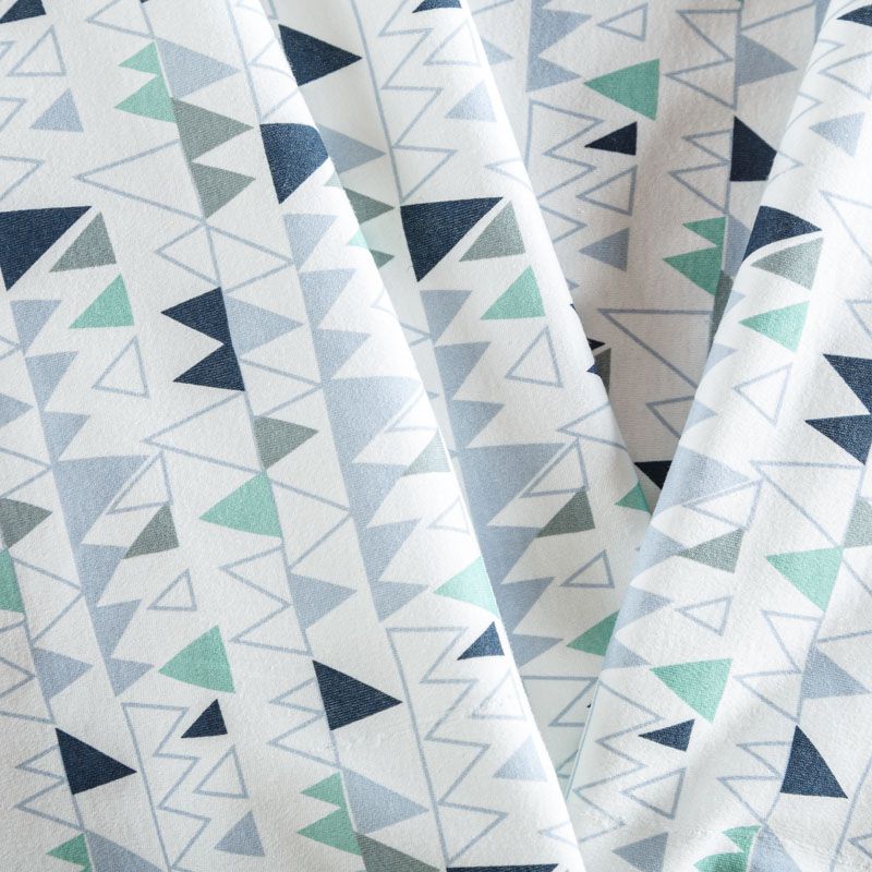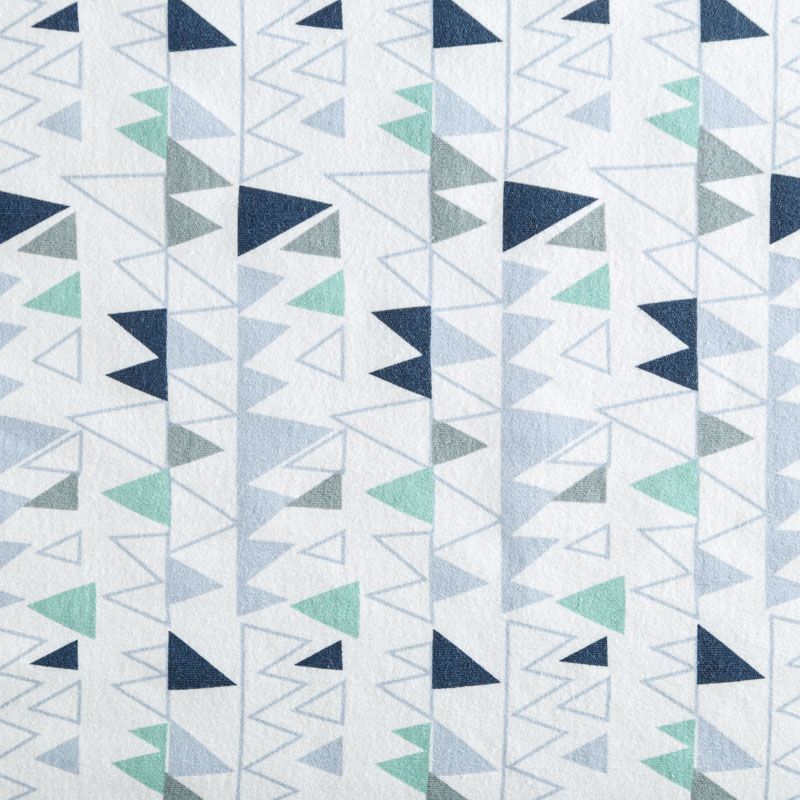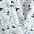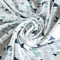 Хлопковый трикотаж качества пенье с геометрическим принтом. Поверхность ткани гладкая, полотно средней плотности, не толстое, мягкое и нежное на ощупь, тянется за счет эластана в составе. Прерасно подойдет для пошива детской одежды, постельного белья и комплектов в кроватку, пижамы, домашней и летней одежды.