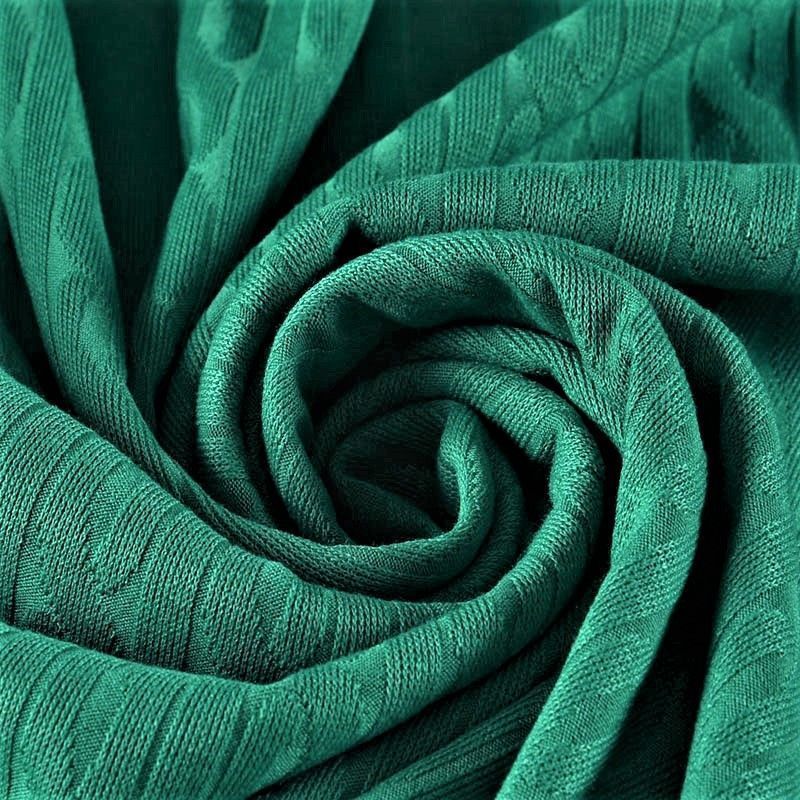 Текстурное вязаное, мягкое, пластичное полотно средней плотности. Вязаный узор - стилизованая косичка, расположен по всему полотну. Подойдет для пошива боди, топа, лонгслива, кардигана, юбки, платья, водолазок, снудов.
