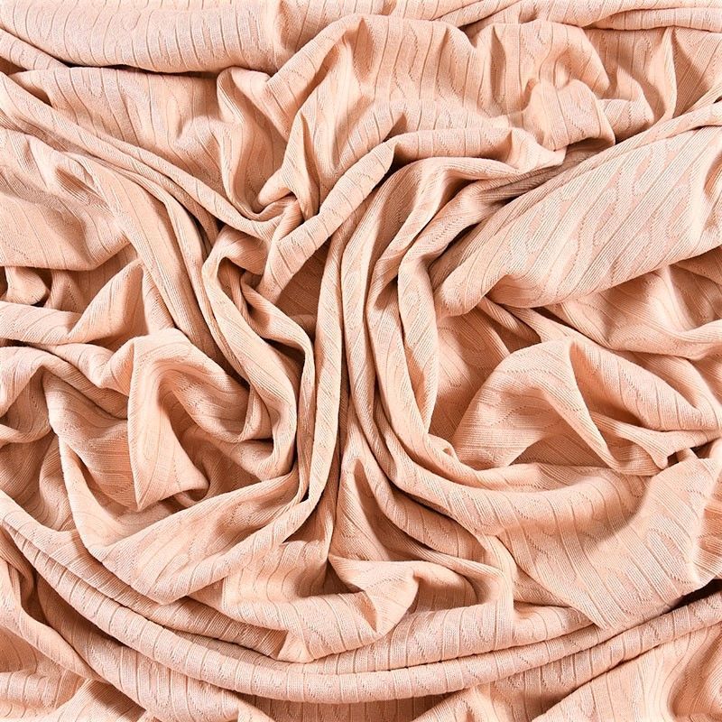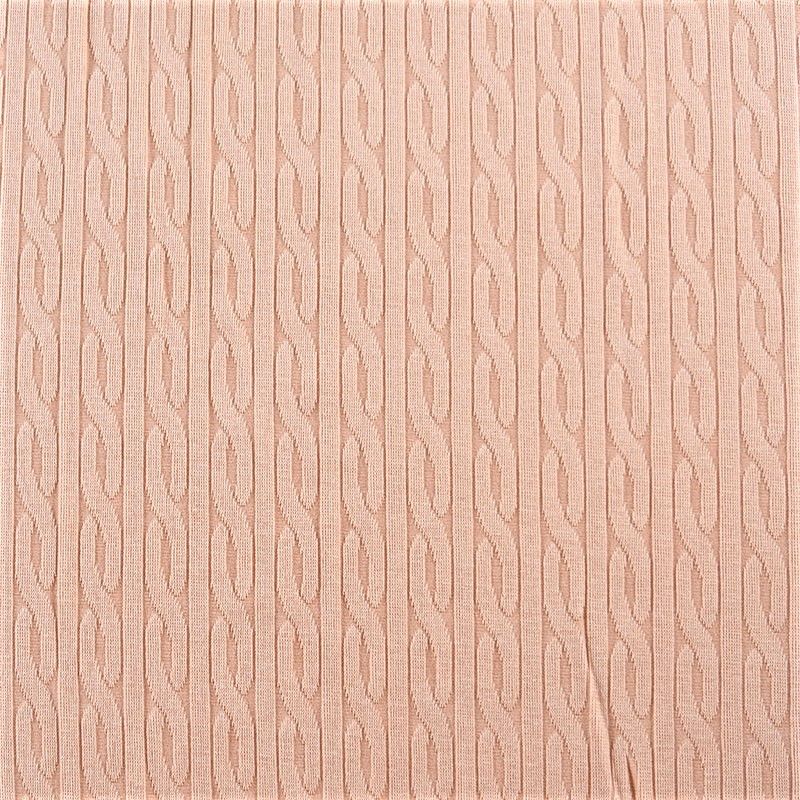 Текстурное вязаное, мягкое, пластичное полотно средней плотности. Вязаный узор - стилизованая косичка, расположен по всему полотну. Подойдет для пошива боди, топа, лонгслива, кардигана, юбки, платья, водолазок, снудов.