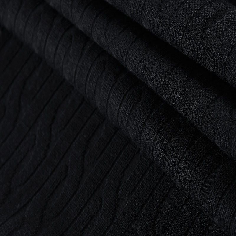 Текстурное вязаное, мягкое, пластичное полотно средней плотности. Вязаный узор - стилизованая косичка, расположен по всему полотну. Подойдет для пошива боди, топа, лонгслива, кардигана, юбки, платья, водолазок, снудов.