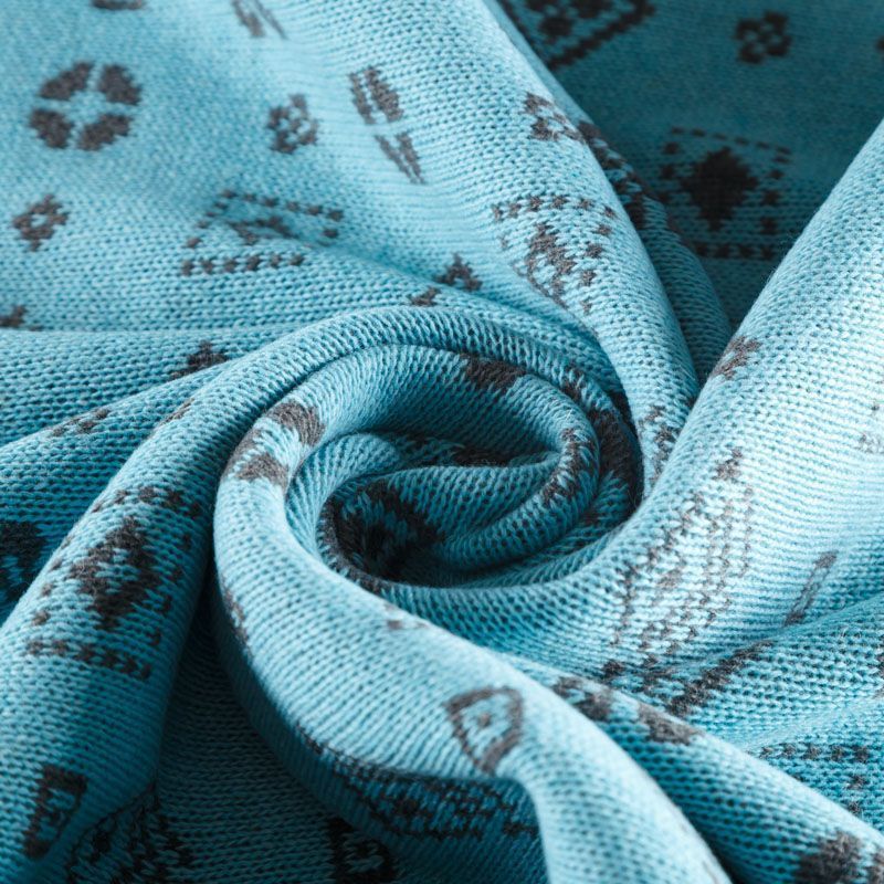 Итальянский теплый мягкий вязаный шерстяной трикотаж, два слоя которого соединены между собой жаккардовым геометрическим узором. Полотно очень пластичное, приятное на ощупь, не колется. При соответствующей обработке швов одежду из этого трикотажа можно носить на обе стороны. Подойдет для пошива теплых уютных свитеров, кардиганов, пальто, костюмов, теплого платья, свитшота, джемпера.