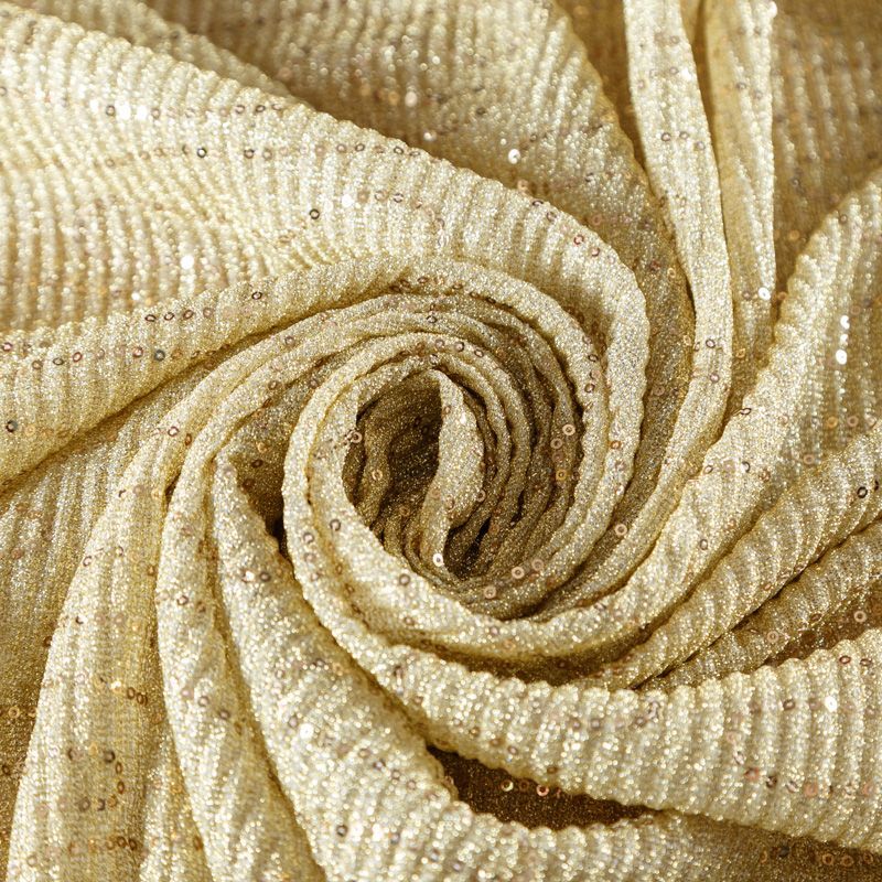 Сложнейшее переплетение люрексовой и металлизированной нити, мерцание пайеток, а также волнообразное гофре создают впечатление живой ткани, которая меняет свой цвет при каждом движении и направлении преломления света. Ткань тонкая, легкая, подойдет для пошива платья, юбки на подкладе, туники, блузы, комбинезона, топа.