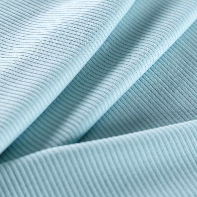Трикотаж-лапша средней плотности, с высокой степенью эластичности, поверхность рельефная за счет эффекта резинки. С изнанки трикотаж гладкий, комфортный, подходит для использования без подклада. Сшить из такого полотна можно топы, лонгсливы, водолазки, платья,  юбки, брючные комплекты. Направление полос - вдоль линии кромки.