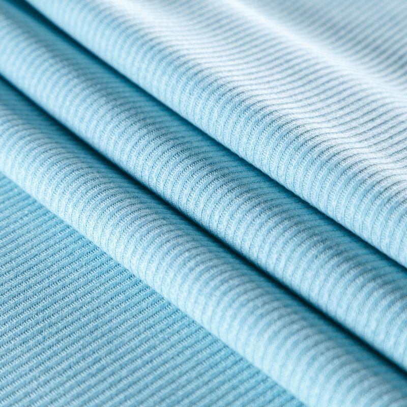Трикотаж-лапша средней плотности, с высокой степенью эластичности, поверхность рельефная за счет эффекта резинки. С изнанки трикотаж гладкий, комфортный, подходит для использования без подклада. Сшить из такого полотна можно топы, лонгсливы, водолазки, платья,  юбки, брючные комплекты. Направление полос - вдоль линии кромки.