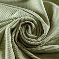 Трикотаж-лапша средней плотности, с высокой степенью эластичности, поверхность рельефная за счет эффекта резинки. С изнанки трикотаж гладкий, комфортный, подходит для использования без подклада. Сшить из такого полотна можно топы, лонгсливы, водолазки, платья,  юбки, брючные комплекты. Направление полос - вдоль линии кромки.