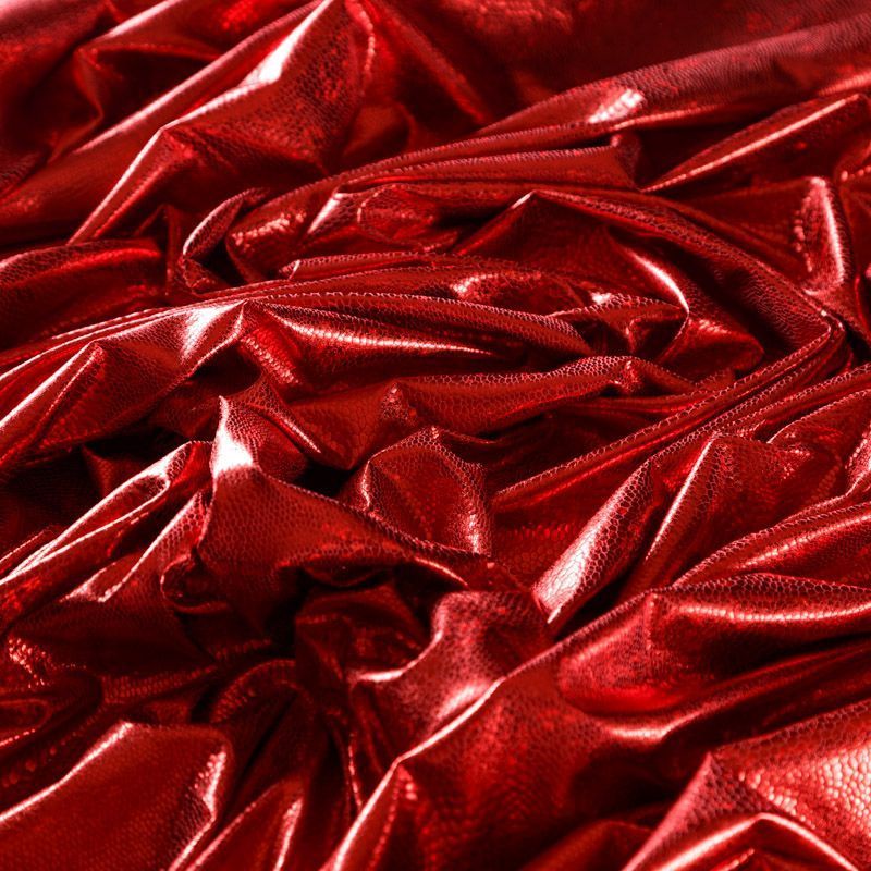 Эффектное трикотажное полотно с напыленными разноцветными блестками. Поверхность фактурная с рисунком под рептилию, который не деформируется при растяжении трикотажа. Материал очень пластичный, образует струящиеся мягкие складки, отлично тянется, не просвечивает, не мнется. Изнаночная сторона матовая, приятная на ощупь. Идеальный выбор для нарядных моделей, гимнастических и танцевальных костюмов.