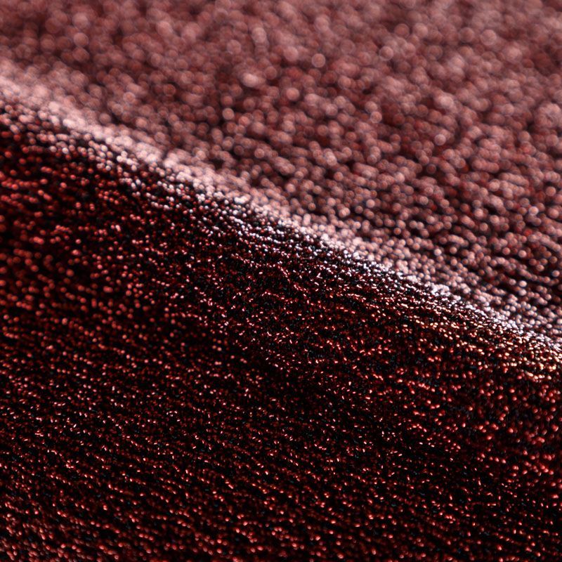 Трикотажное полотно с металлизированным блеском и  мерцанием. Люрексные нити бордового оттенка вплетены в структуру полотна и создают объемный "вспененный" эффект, при этом изнанка гладкая и ровная. Ткань очень приятная к телу, не колется, не просвечивается, очень эластичная, отлично драпируется и ниспадает, красиво ляжет по фигуре. Идеальный вариант для пошива вечерних и нарядных платьев облегающего силуэта, топов, комбинезона, юбки, широких брюк, туник, кардиганов, накидок.