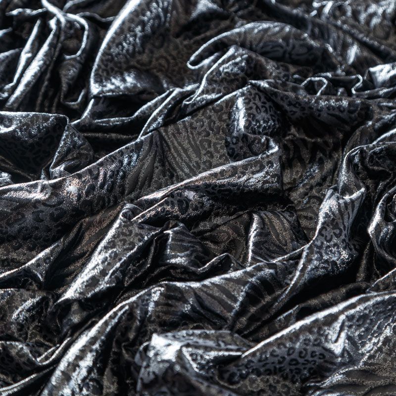 Эффектное трикотажное полотно с искрящимся напылением. Материал очень пластичный, образует струящиеся мягкие складки, отлично тянется, не просвечивает, не мнется. Изнаночная сторона матовая, приятная на ощупь. Идеальный выбор для нарядных платьев, топов, маек, гимнастических и танцевальных костюмов.