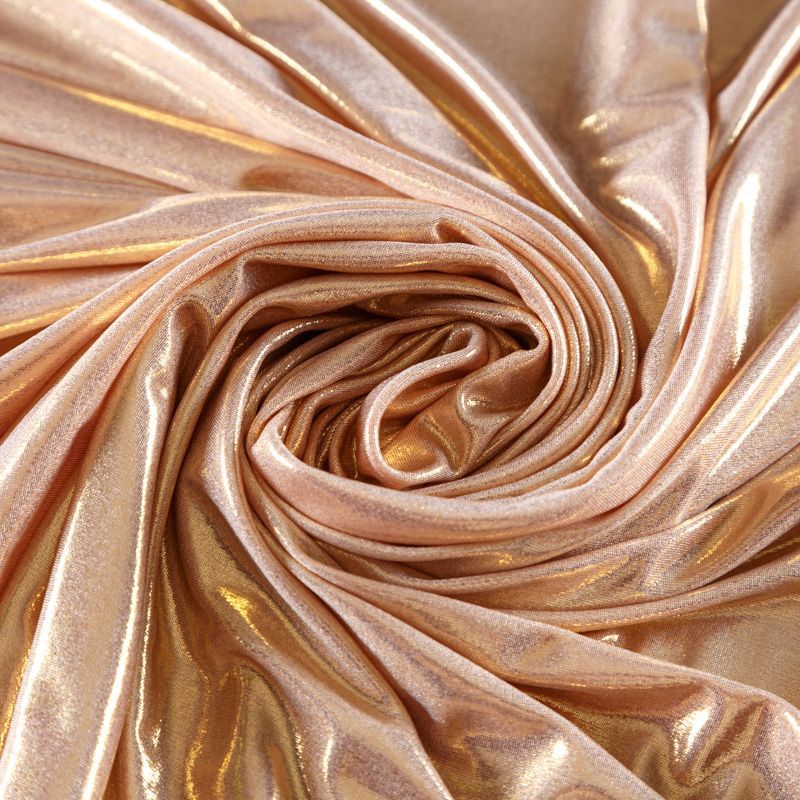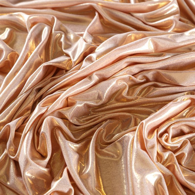Эффектное трикотажное полотно с мерцающим напылением. Материал очень пластичный, образует струящиеся мягкие складки, отлично тянется, не просвечивает, не мнется. Изнаночная сторона матовая, приятная на ощупь. Идеальный выбор для нарядных платьев, топов, маек, гимнастических и танцевальных костюмов.