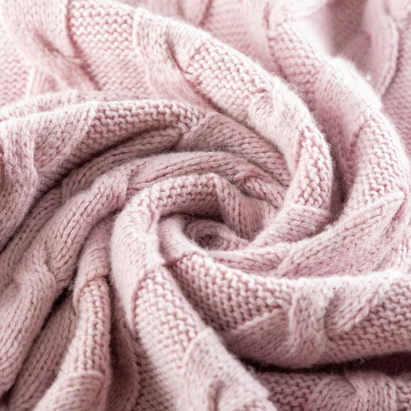 Итальянский шерстяной трикотаж пудрово-розового оттенка с крупными ажурными вязаными "косами". Полотно плотное, мягкое, эластичное, не просвечивает. Прекрасно подойдет для пошива теплых, объемных уютных свитеров, кардиганов, жилета, платьев, шарфов, палантинов, пончо или снудов.