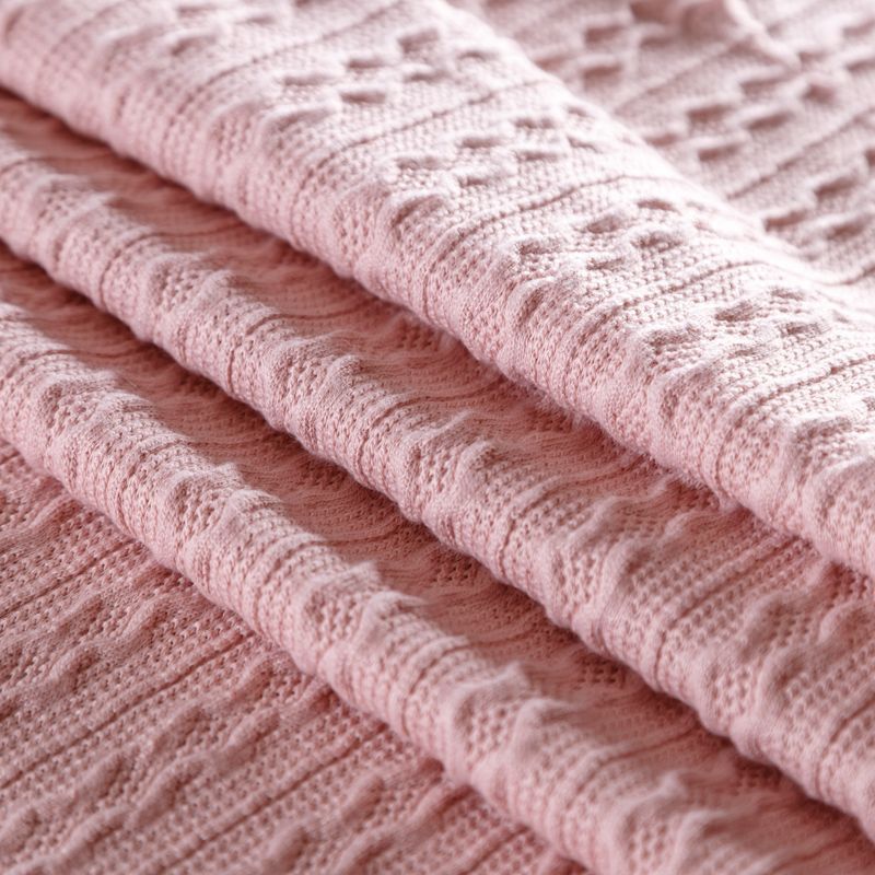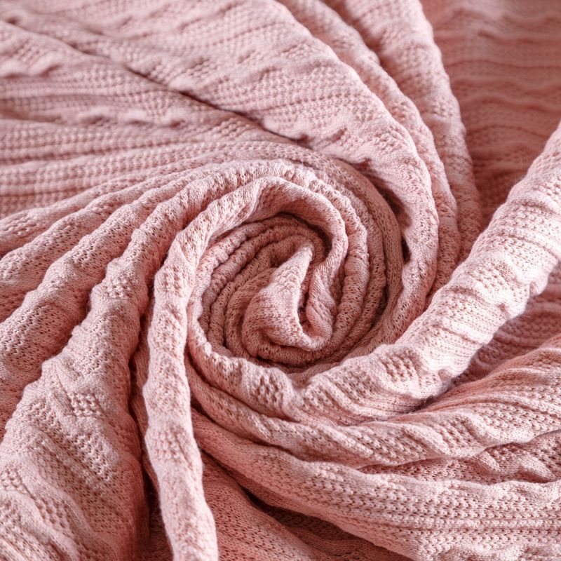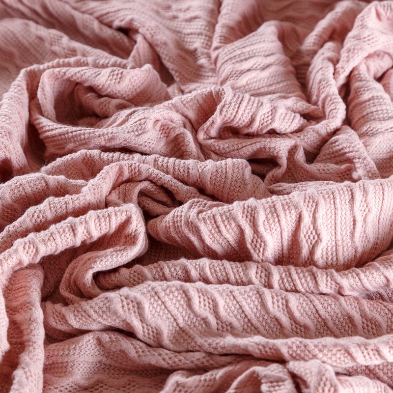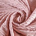 Текстурное вязаное, мягкое, пластичное полотно средней плотности в розовом оттенке. Вязаный узор - стилизованая косичка с полосками расположен по всему полотну. Подойдет для пошива уютного свитера, кардигана, юбки, платья, водолазок, снудов и головных уборов.