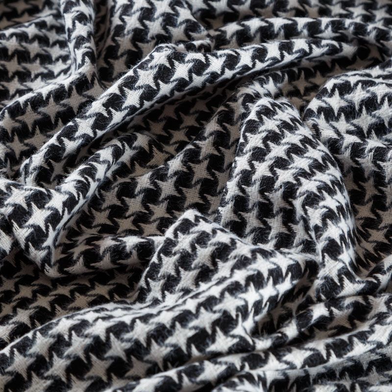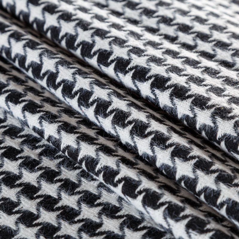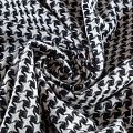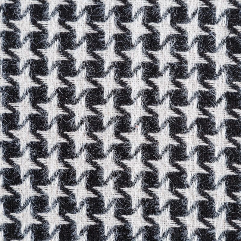 Костюмный твид с черного цвета с геометрическим узором молочного оттенка. Ткань плотная, мягкая, приятная на ощупь, прочная, не вытирается. Отличный выбор для осенних костюмов, облегченного пальто, куртки, бомбера, юбки, шорт или теплого платья.