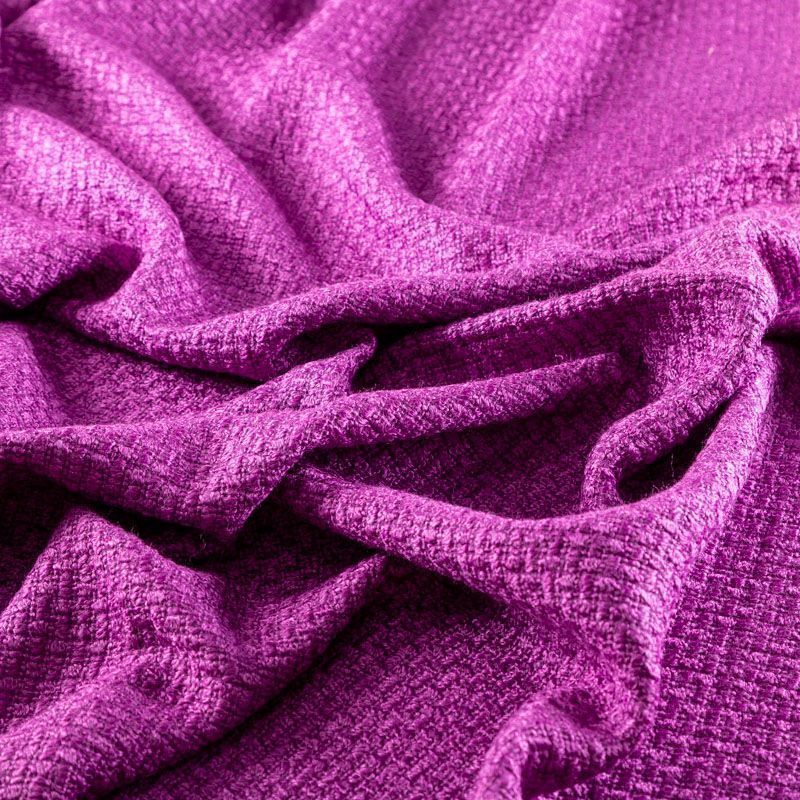 Полушерстяной итальянский твид насыщенного благородного лилового оттенка. Ткань плотная, в меру объемная с легким эффектом букле из нитей того же цвета, которые образуют мелкую клетку. Твид мягкий, пластичный, умеренно держит форму, прекрасно подойдет для пошива жакетов на подкладке, жилетов, кардиганов, легких пальто, юбок и платьев.