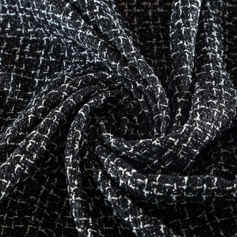 Мягкая, пластичная и объемная ткань, с разреженной и рельефной вывязанной структурой. Буклированный твид в стиле Шанель буквально соткан из различных по толщине и текстуре нитей, образующих рисунок в виде клетки. В плетение добавлена блестящая люрексная нить. Твид идеально подходит для пошива платьев, юбок, жакетов, легких пальто, эффектных бомберов и курток.