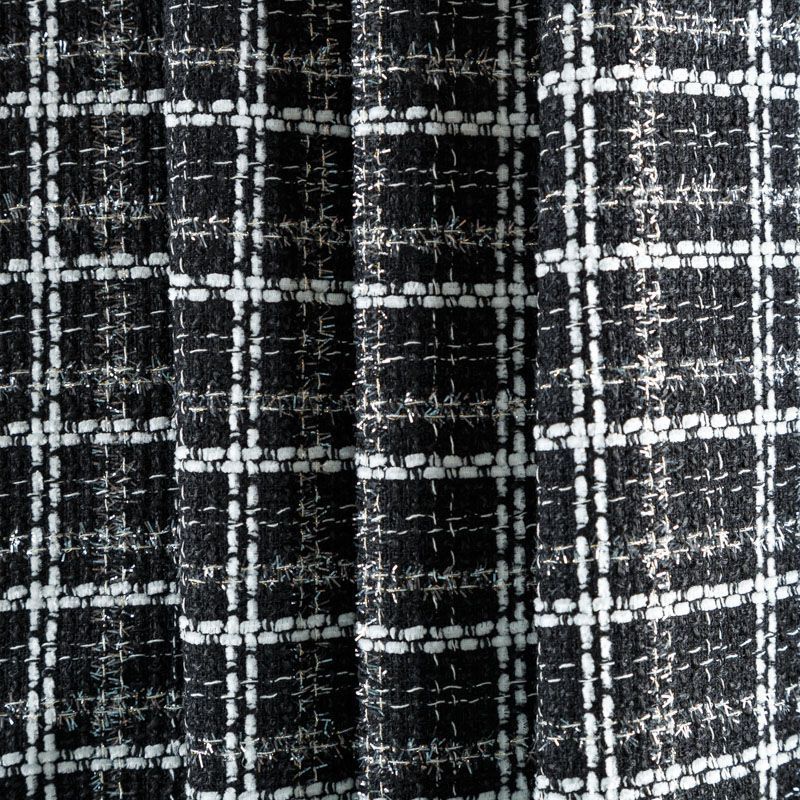Мягкая, пластичная и объемная ткань, с разреженной и рельефной вывязанной структурой. Буклированный твид в стиле Шанель буквально соткан из различных по толщине и текстуре нитей, образующих рисунок в виде клетки. В плетение добавлена блестящая люрексная нить. Твид идеально подходит для пошива платьев, юбок, жакетов, легких пальто, эффектных бомберов и курток.