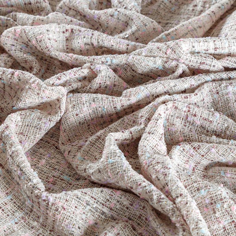 Переплетение разноцветных нитей делает эту ткань универсальной, и в тоже время оригинальной. Полотно плотное, но очень мягкое. Теплое, комфортное. Плетение рыхлое, поверхность фактурная, поэтому изделия выглядят достаточно объемно. Подойдет для пошива костюмов с юбкой, жакетов, облегченных пальто.