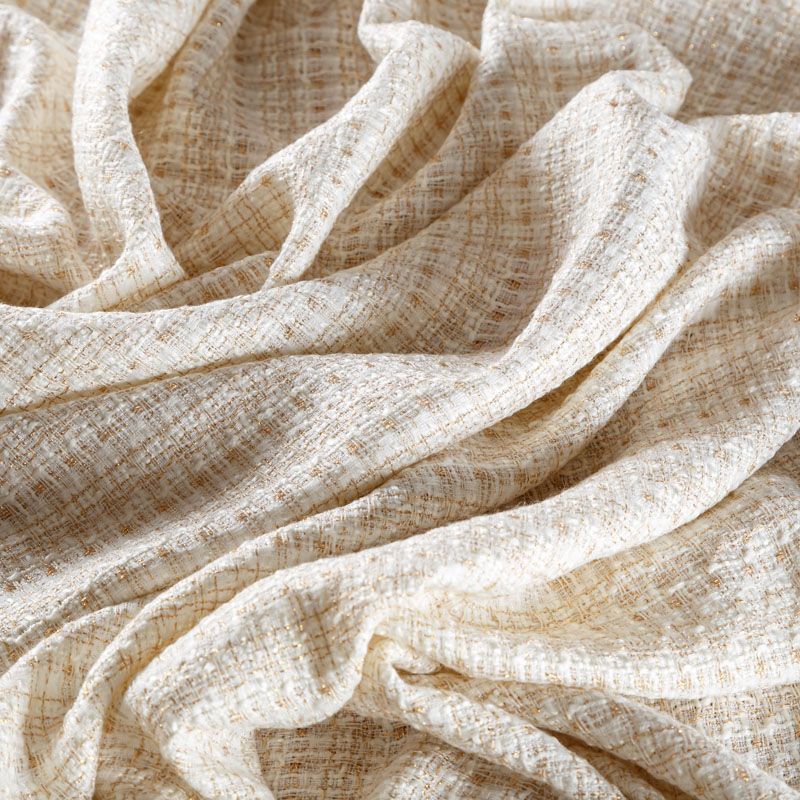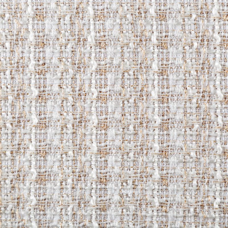 Мягкая, пластичная и объемная ткань, с разреженной и рельефной вывязанной структурой. Буклированный твид в стиле Шанель буквально соткан из различных по толщине и текстуре нитей, образующих рисунок в виде клетки. В плетение добавлена блестящая люрексная нить. Твид идеально подходит для пошива платьев, юбок, жакетов, легких пальто, эффектных бомберов и курток.